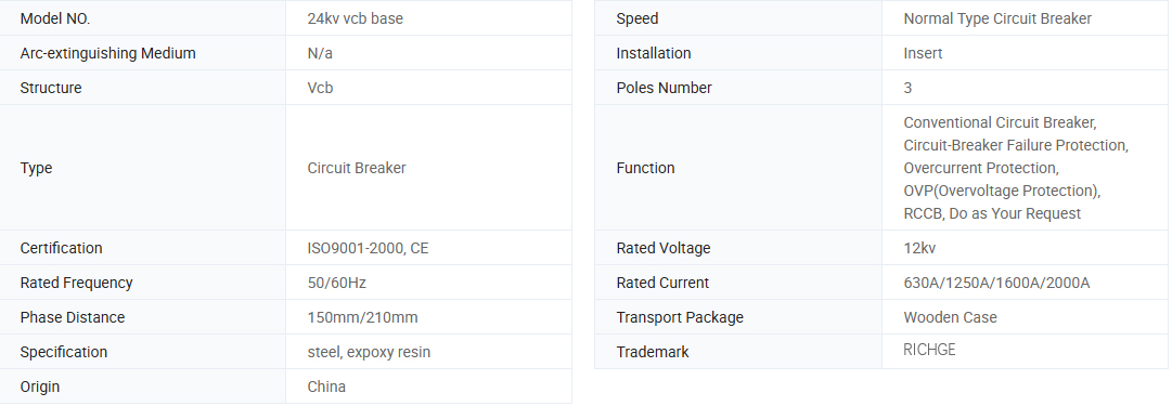 தனிப்பயனாக்கக்கூடிய 24 கே.வி VS1 வெற்றிட சர்க்யூட் பிரேக்கர் வி.சி.பி அடிப்படை தொடர்பு பெட்டியுடன்