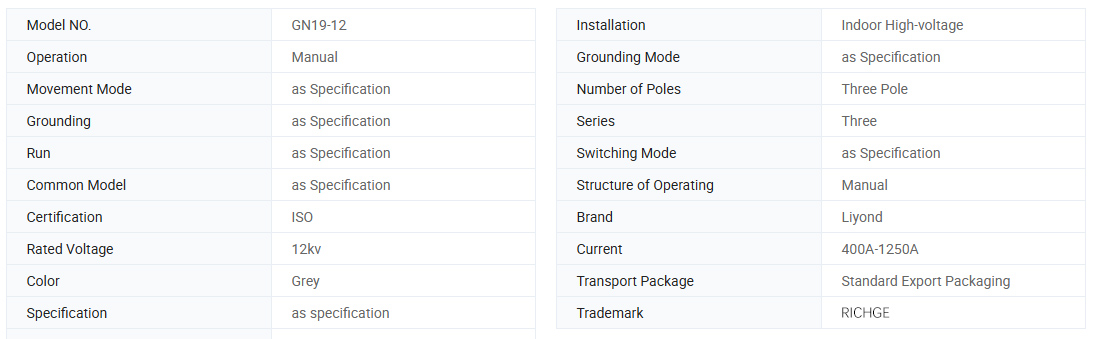 GN19-12, 12C தொடர் உட்புற உயர் மின்னழுத்த துண்டிப்பு சுவிட்சுகள் (இனி துண்டிப்பு சுவிட்சுகள் என குறிப்பிடப்படுகின்றன) 12kV, மூன்று-கட்ட AC 60Hz என மதிப்பிடப்பட்ட மின்னழுத்தம் கொண்ட உட்புற சாதனங்கள் ஆகும், மேலும் மின்னழுத்தம் மற்றும் சுமை இல்லாத போது சுற்றுகளைப் பிரித்து மூடுவதற்குப் பயன்படுத்தப்படுகின்றன.