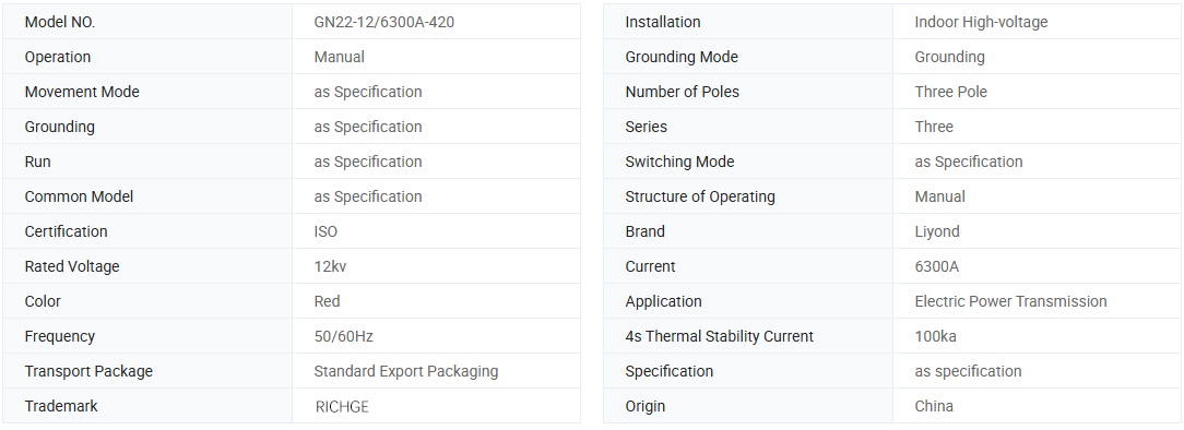 • GN22-12 மூன்று-கட்ட தனிமைப்படுத்தும் சுவிட்ச் 6300A உயர் மின்னோட்டம் உட்புற உயர் மின்னழுத்தம்GN22-12 மூன்று-கட்ட தனிமைப்படுத்தும் சுவிட்ச் 6300A உயர் மின்னோட்டம் உட்புற உயர் மின்னழுத்தம்