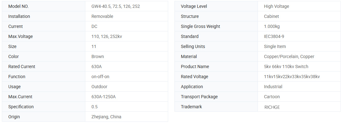 GW4-12(40.5) வெளிப்புற HV துண்டிப்பு சுவிட்ச் GW4-12(40.5) வெளிப்புற ஏசி உயர் மின்னழுத்த துண்டிப்பு சுவிட்ச் (குறுகிய துண்டிப்பு சுவிட்ச்) மின்னழுத்தத்துடன் சுற்று திறக்க மற்றும் மூடுவதற்கு பயன்படுத்தப்படுகிறது ஆனால் சுமை இல்லாத 50/60Hz, 12(40.5)kV சக்தி அமைப்பு. இது IEC129-1984 AC டிஸ்கனெக்ட் ஸ்விட்ச் மற்றும் எர்த்திங் ஸ்விட்ச் மற்றும் GB1985 மற்றும் பிற தொடர்புடைய தரநிலைகளுடன் ஒத்துப்போகிறது.