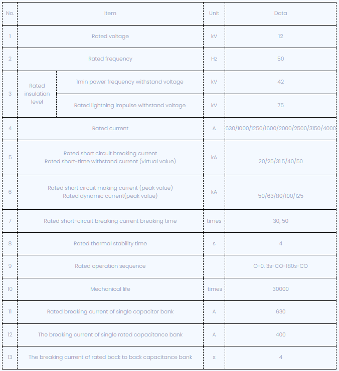 வி.எஸ்.ஜி -12 ஹேண்ட்கார்ட் வகை வெற்றிட சர்க்யூட் பிரேக்கர் தொழில்நுட்ப அளவுரு